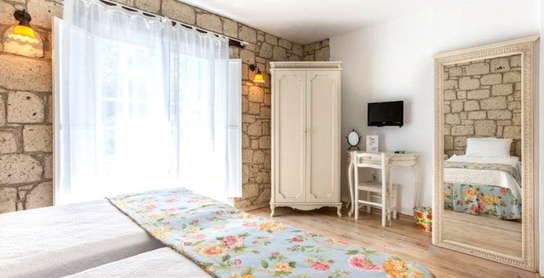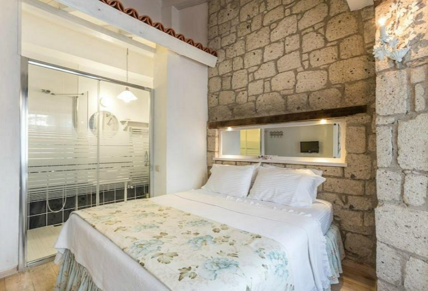 Deluxe odalarımız, Alaçatı’nın büyüleyici atmosferini ve tarihini yansıtan otantik taş duvarlar ve zarif dekorasyonuyla öne çıkar. Geniş pencerelerden süzülen doğal ışık, odalarımızı gün boyunca aydınlatır ve ferah bir ortam sağlar. Modern olanaklarla donatılmış odalarımızda, misafirlerimiz için her detay düşünülmüştür.